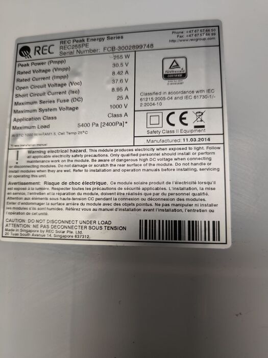 The REC Solar REC255PE is a 255 Wp polycrystalline solar panel