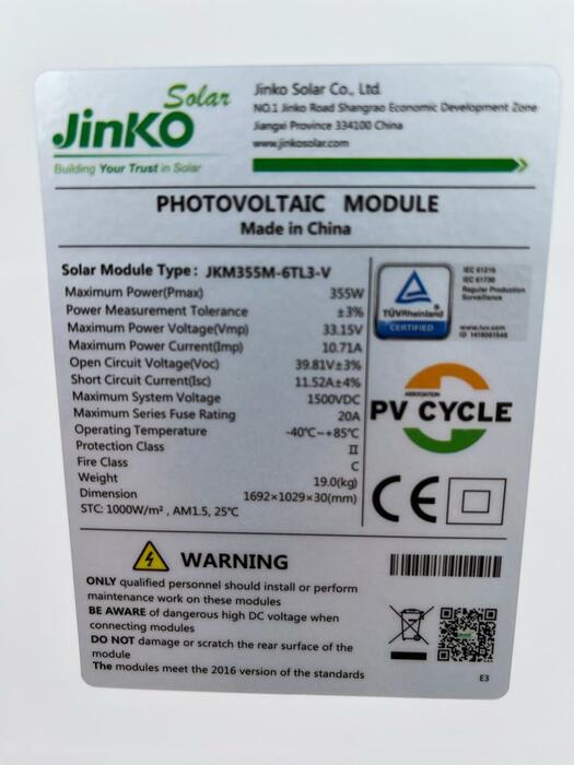 Das Jinko Solar JKM355M-6TL3-V ist ein monokristallines Solarmodul mit 355Wp.