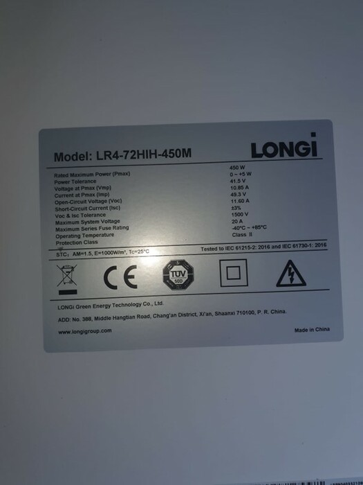 The Longi Solar Hi-MO4m LR4-72HIH-450M is a 450Wp monocrystalline solar panel