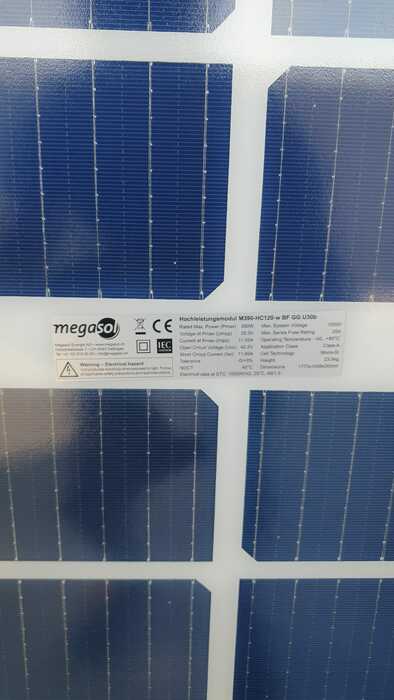 Das Megasol M390-HC120-w BF GG U30b ist ein monokristallines Solarmodul mit 390Wp.