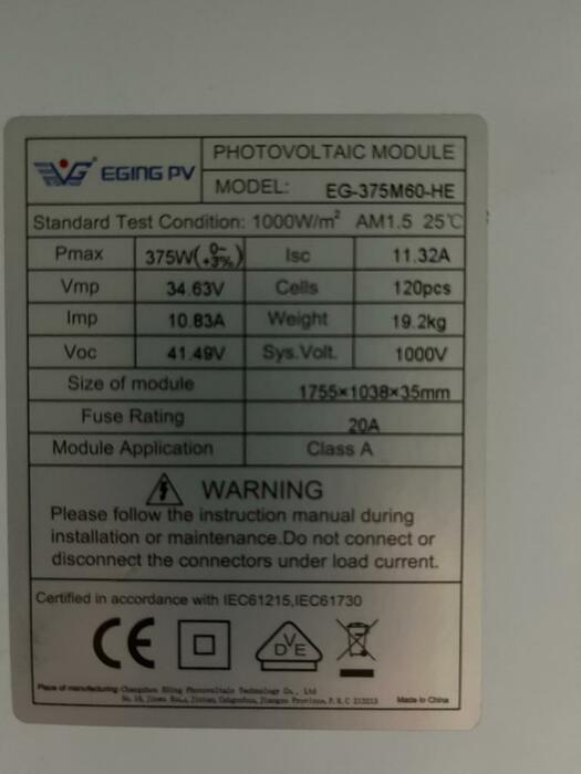 Das Eging EG-375M60-HE ist ein monokristallines Solarmodul mit 375Wp.