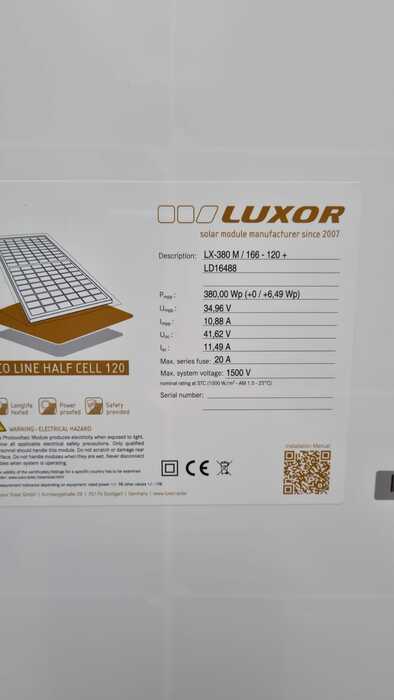 The Luxor LX-370M / 166-120 + EcoLine is a monocrystalline solar module with 370Wpo