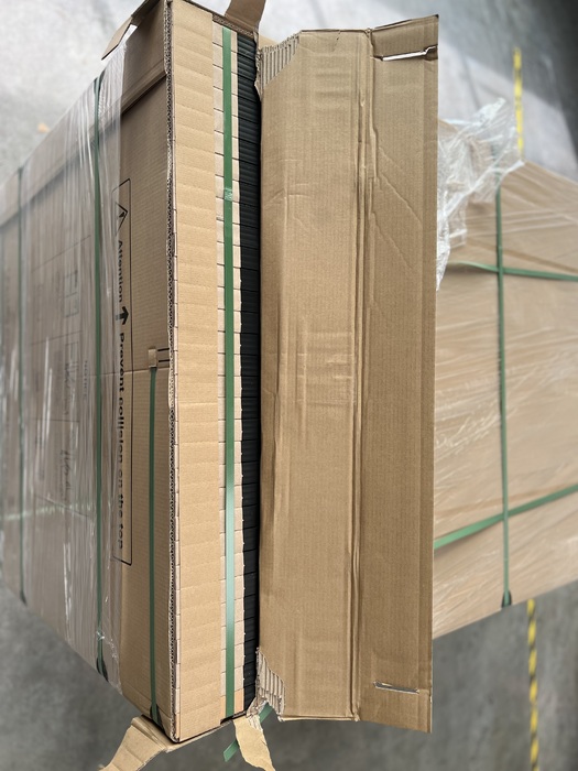 • Glas-Folie-Modul mit schwarzem Rahmen und weißer Rückfolie