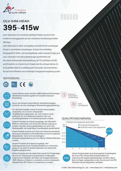 Olive Solar 410W Schwarzes Solarmodule
