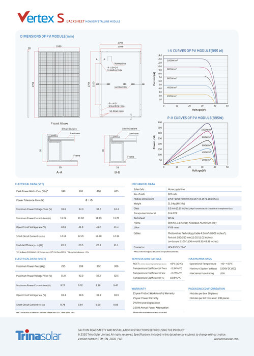 TRINA Vertex S - 405 W, black frame, 21.1% Efficiency, 120 cells, READY TO SHIP!!!
