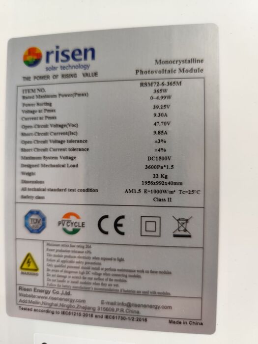 Solar Panel / Mono / Risen Solar - RSM72-6-365M