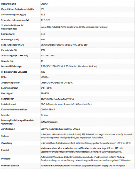 Type Batteriespeicher Deye SE-G5.1 Pro (LiFePo4) 5,12kWh