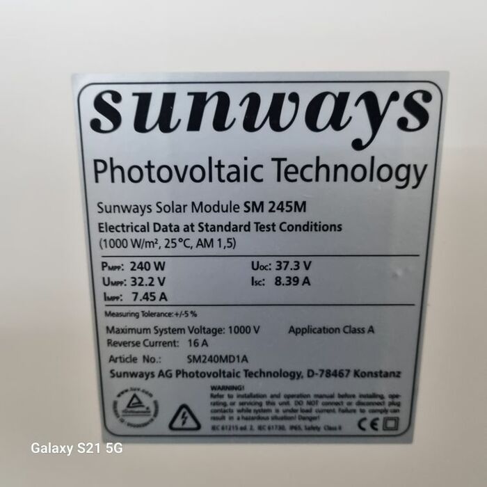 Das Sunways SM 245M ist ein monokristallines Solarmodul mit 240Wp.