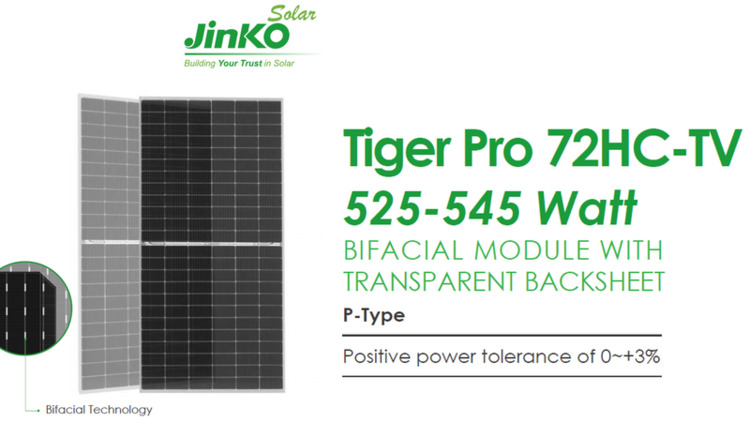 Jinko Tiger Pro 72HC-TV bifacial 530 SF (transparent backsheet)