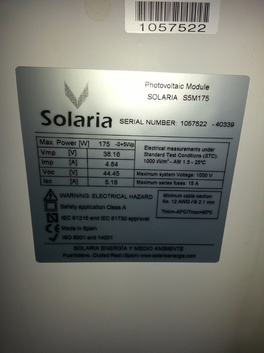 Solaria S5M175 - monokristallines Solarmodul mit 175Wp