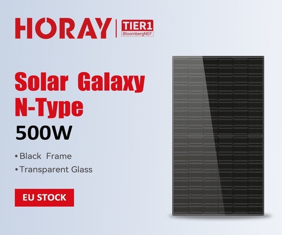 Sonderpreis Horay Solar HS500TC-MHC-D Glas-Glas bifazial Photovoltaikmodul 210R N-Type 500Wp Schwarz Rahmen & Transparent Glas