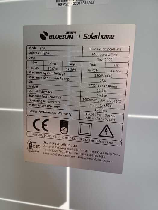 solar panels Bluesun 425 with white background