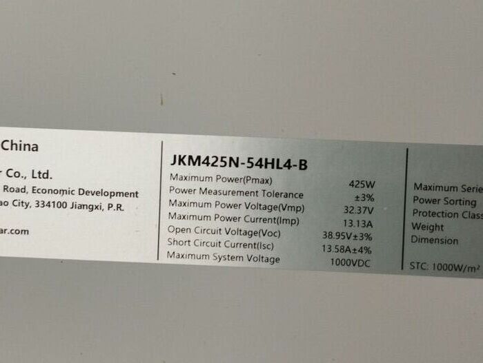 Solar Panel / Mono / JinkoSolar - JKM425N-54HL4-B ...