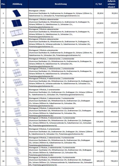 Sie bekommen bei uns ebenfalls die komplette Unterkonstruktion für Satteldächer, bis auf die Schraube stückgenau abgezählt. Dazu bitte das letzte Bild beachten. Sollte Ihre Dachbelegung nicht in der Liste sein, senden Sie uns diese per Email an schmelter (ät) schmelterland.de und wir erstellen ein Angebot dazu.