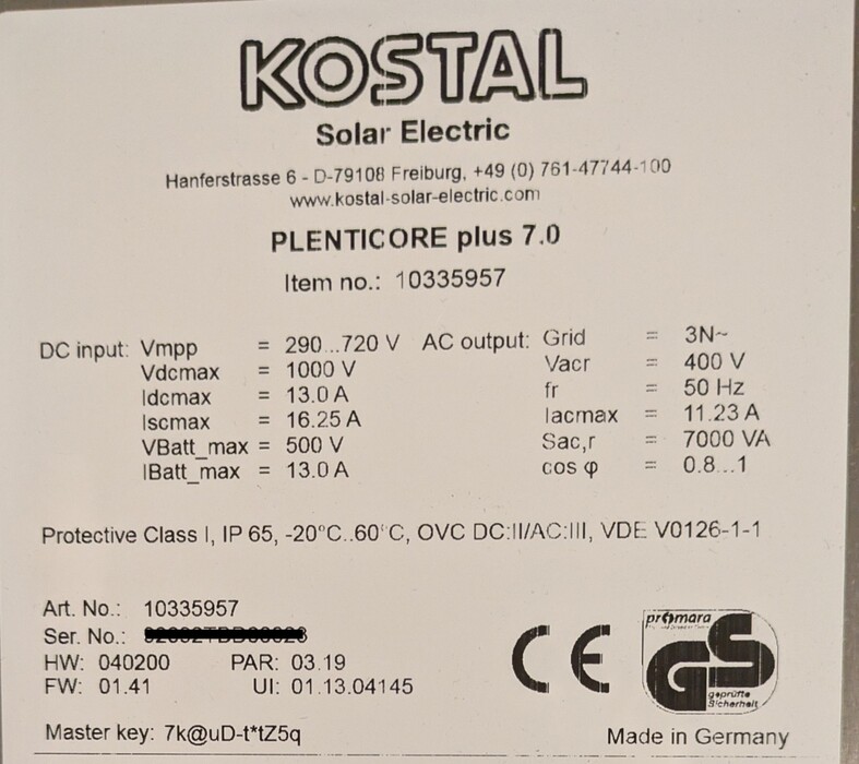 Wegen der Vergrößerung meiner Solaranlage muss ich diesen Wechselrichter ersetzen. Er ist noch innerhalb der erweiterten Garantie und wurde im April 2020 in Betrieb genommen. Die Batterie-Option ist aktiviert und im Preis enthalten. Das Gerät lief die gesamte Zeit über problemlos.