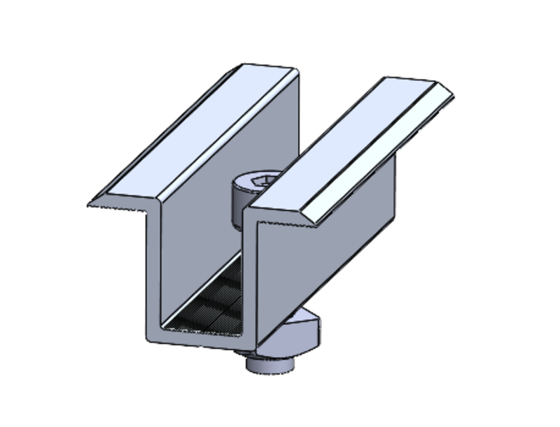 Assembled middle clamp for PV modules designed for both ground and roof installations and is compatible with all PV frame types.