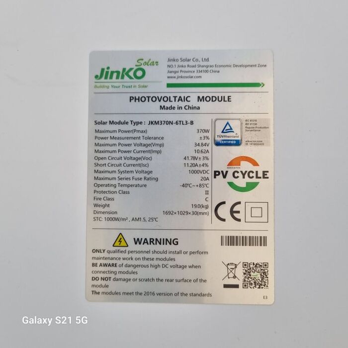 Das Jinko Solar JKM370N-6TL3-B ist ein monokristallines Solarmodul mit 370Wp.