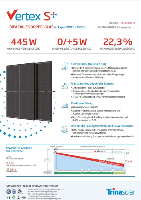 Trina Vertex S+ TSM-445NEG9RC.27 445 Wp Glas-Glas Bifazial