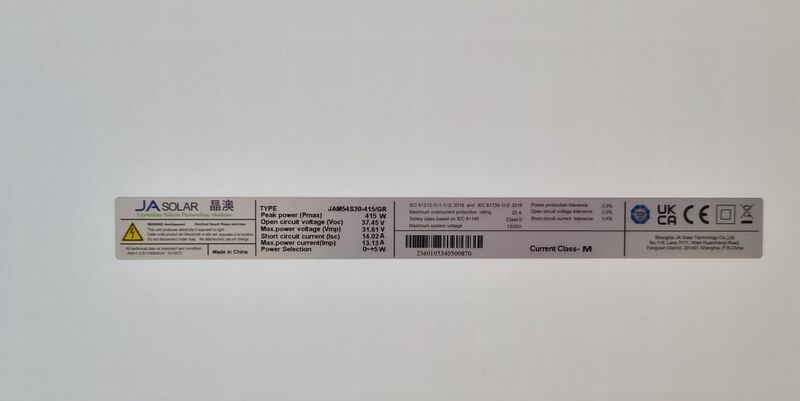 Solar Panel / Mono / JA Solar - JAM54S30-415/GR ...
