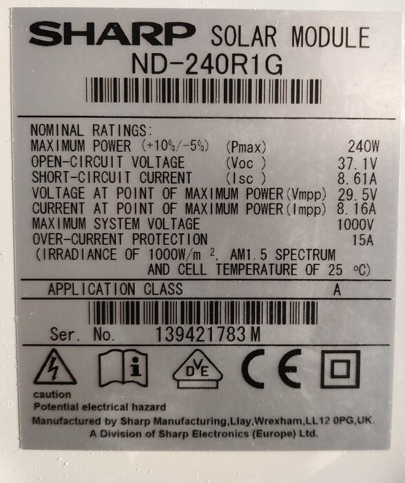 Das Sharp ND-R240R1G ist ein polykristallines Solarmodul a 240Wp