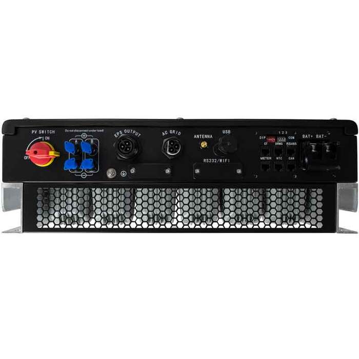 Multitasking-Wechselrichter! Ein PV-Wechselrichter mit integrierter Batteriespeicherfunktion. Dieser Hybrid-Wechselrichter kann mit und auch ohne Batterien betrieben werden. Sie können Ihren erzeugten Solarstrom selbst nutzen oder einfach ins Netz einspeisen. Aufgrund der 2 MPP-Tracker können zwei von einander unabhängige Strings angeschlossen werden. Dies ist wichtig bei z.B. teilweiser Verschattung oder verschiedener Ausrichtungen . Bei unzureichender Stromversorgung aus den PV-Modulen ergänzt das Gerät automatisch mit Batteriestrom oder schaltet bei leeren Batterien auf das Energieversorgungsnetz um. Der Hybrid-Wechselrichter arbeitet On-Grid, sprich netzparallel und damit ist damit anmeldepflichtig. Der Growatt SPH4000 hat zusätzlich einen EPS-Ausgang (Off-Grid-Anschluss), der als Ersatzstrom im einphasigen Betrieb bei Netzausfall genutzt werden kann.