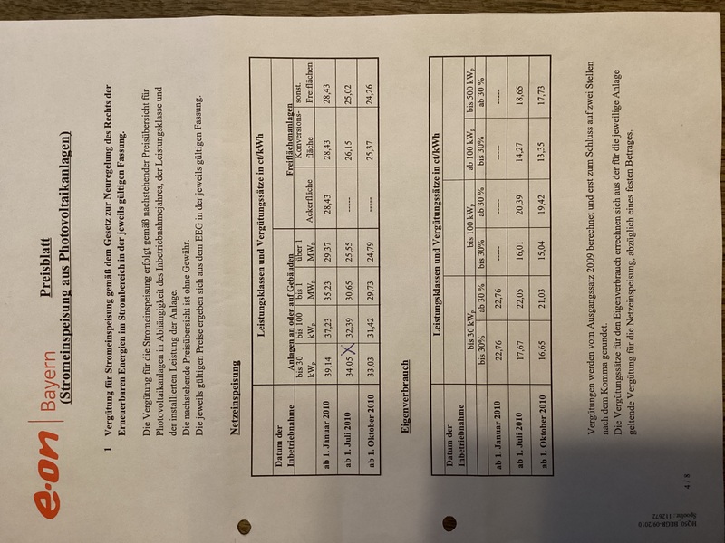 Die Einspeisevergütung von 34,05 Cent wird noch bis zum 15.09.2030 gewährt.