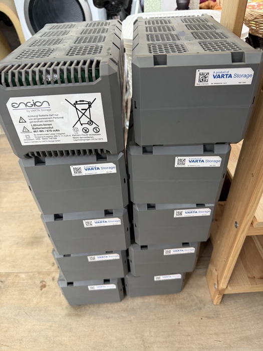 Varta Home Storage 4,6 KW Batteriespeicher für Solaranlagen. 2013 gekauft, fehlerlos bis heute zum Abbau, als Komplett System oder auch einzeln , die Akkus nur zusammen, insgesamt 10 Stück.
