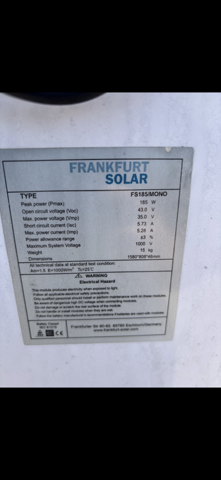 Gebrauchte monokristalline Solarmodule mit 185 Watt Leistung.