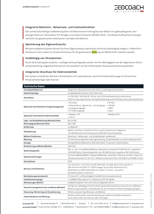 Solar Storage / Home storage / ecocoach AG - ecoBatterySystem 2.0