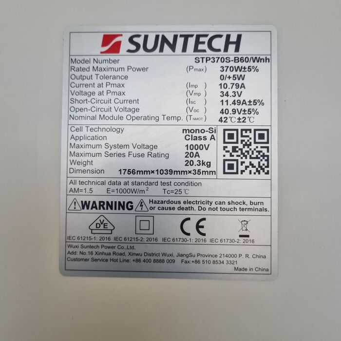 Das Suntech STP370S-B60/Wnh HiPower ist ein monokristallines Modul mit 370Wp.