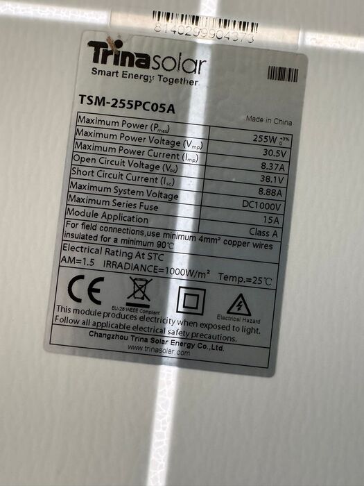 trina solar 255w, ready to load in japan, 10% of panels have snail sign as seen in pictures the rest is in good condition.