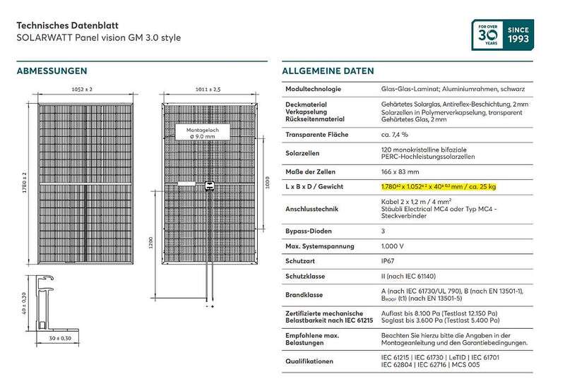 SOLARWATT Panel vision H 3.0 style 365Wp