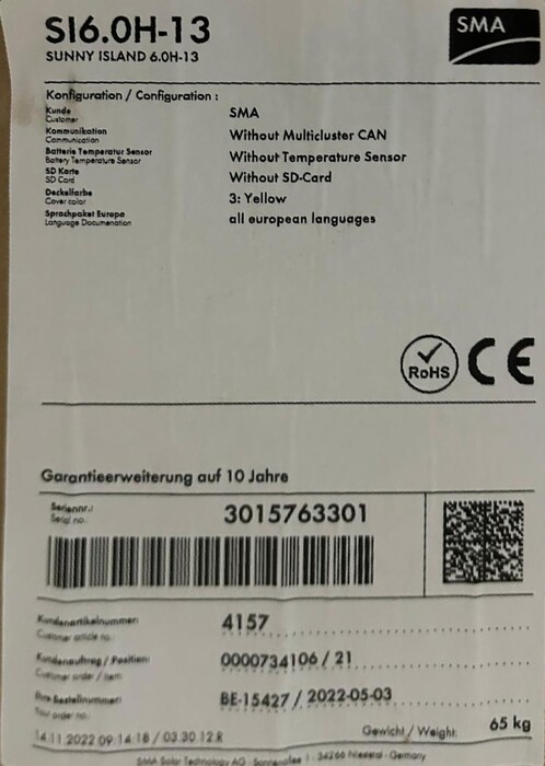 Biete SMA Sunny Island 6.0H-13 Batterie-Wechselrichter in Originalverpackung. Die Produkte wurden witterungsgeschützt in einer Halle gelagert. Versand sowie Selbstabholung sind möglich.