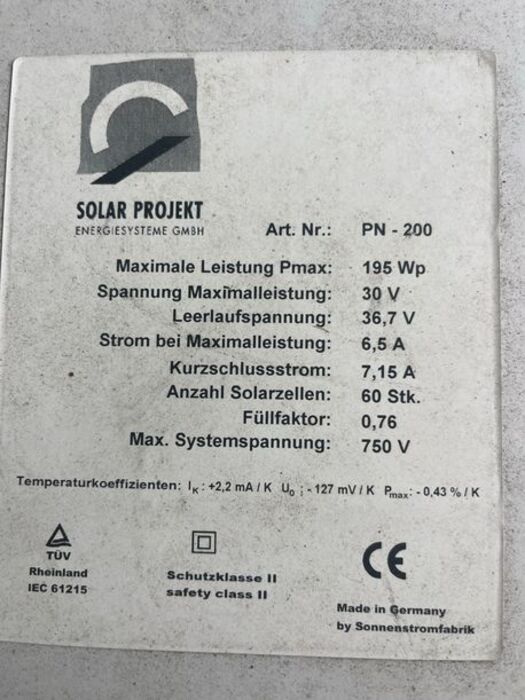 !!! bitte beachten Sie, dass es sich hier um gebrauchte PV Module geht, die über 20 Jahre alt sind !!!