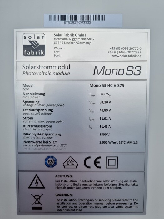Das Solarfabrik S3 Halfcut 380Wp ist ein monoristallines Modul mit 380Wp.