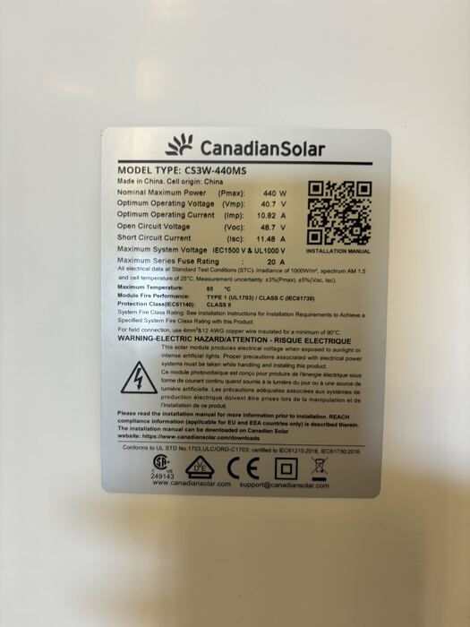Solar Panel / Mono / Canadian Solar - CS3W-440MS 1500V