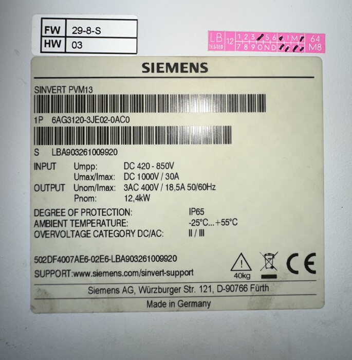 Inverter / String / Siemens - SINVERT PVM13