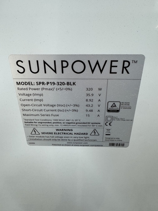 Solar Panel / Mono / SunPower - SPR-P19-320-BLK