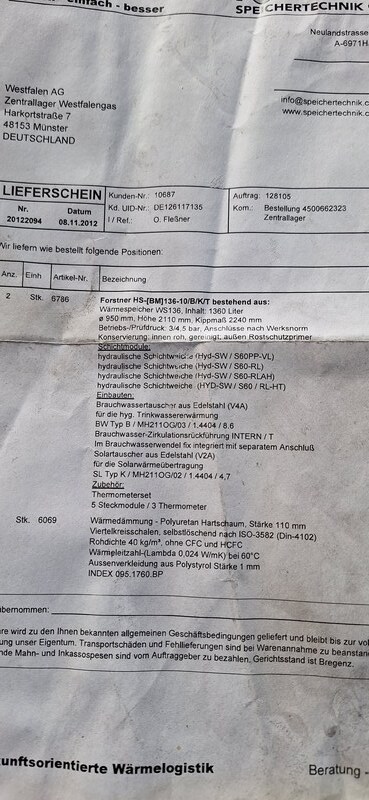 Westfalen AG / Wärmespeicher Forstner HS-BK136-10 BKT