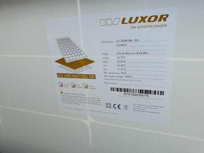 Solar Panel / Mono / Luxor Solar - LX-375M/166-120+ ...