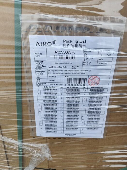 Das Aiko Solar A460-MAH54Db Neostar 2S+ Fullblack ist ein monokristallines Doppelglas-Solarmodul mit 460Wp.