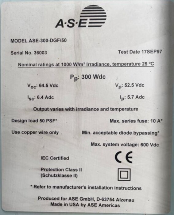 • Leistung: ~ 285 Wp (aktuelle Leistung, Flash-Test geprüft)