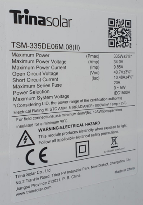 Solar Panel / Mono / Trina Solar - TSM-335-DE06M.08 II