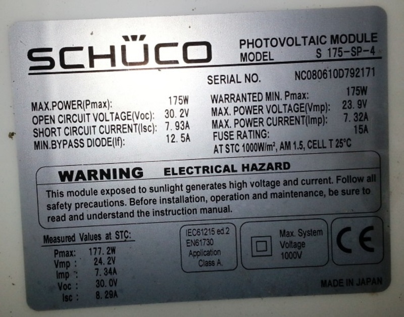 The Schüco S175-SP-4 is a polycrystalline solar module with 175Wp
