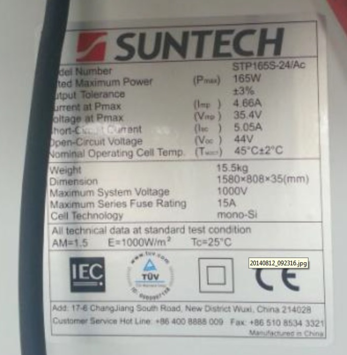 Suntech STP 165S-24 / Ac = Suntech STP165 S-24 / Ac = Suntech STP 165 S-24 / Ac