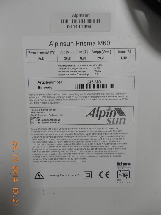 Solar Panel / Mono / jms Solar - Alpinsun Prisma ...