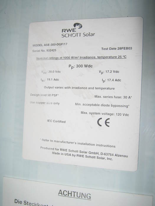 Bei den PV-Modulen handelt es sich um Restposten. Die PV-Module werden ohne Garantie oder Gewährleistung verkauft. Sollten Restgarantien bestehen, können diese eventuell beim Hersteller (sofern dieser nicht insolvent ist) durch den Käufer geltend gemacht werden. Wir weisen ausdrücklich darauf hin, dass wir als Verkäufer keine Gewährleistungsansprüche oder Garantien geben können. Mit der Durchführung Ihres verbindlichen Kaufes erklären Sie sich damit einverstanden!