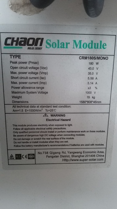 Solar Panel / Mono / Chaori Solar - CRM 180S/Mono