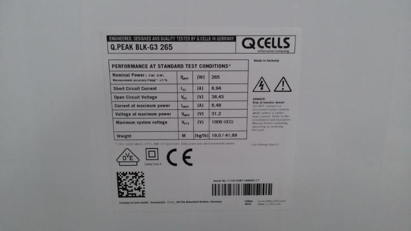 The Q.Cells Q.Peak BLK G3 265 is a monocrystalline solar module with 265Wp