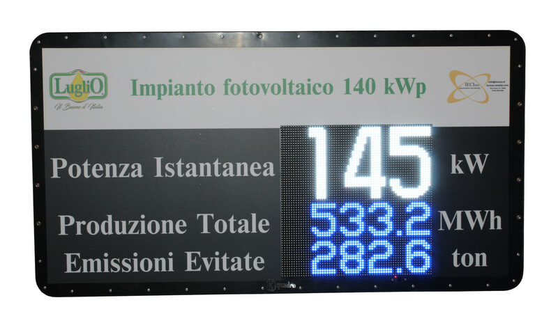 Progettazione e produzione tabelloni LED per la visualizzazione dei dati di produzione degli impianti fotovoltaici.About Kquadro Elettronica SRL